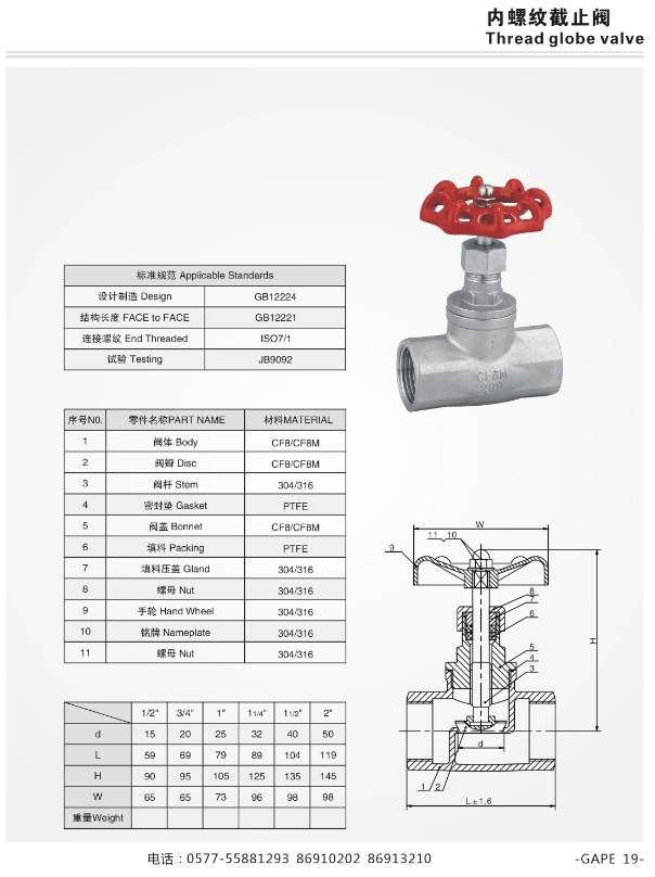 不銹鋼內螺紋截止閥